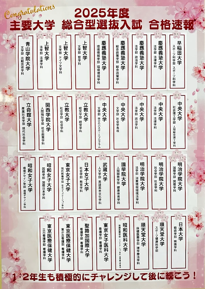 2025 年度 主要大学「総合型選抜」合格速報(取り組み紹介)